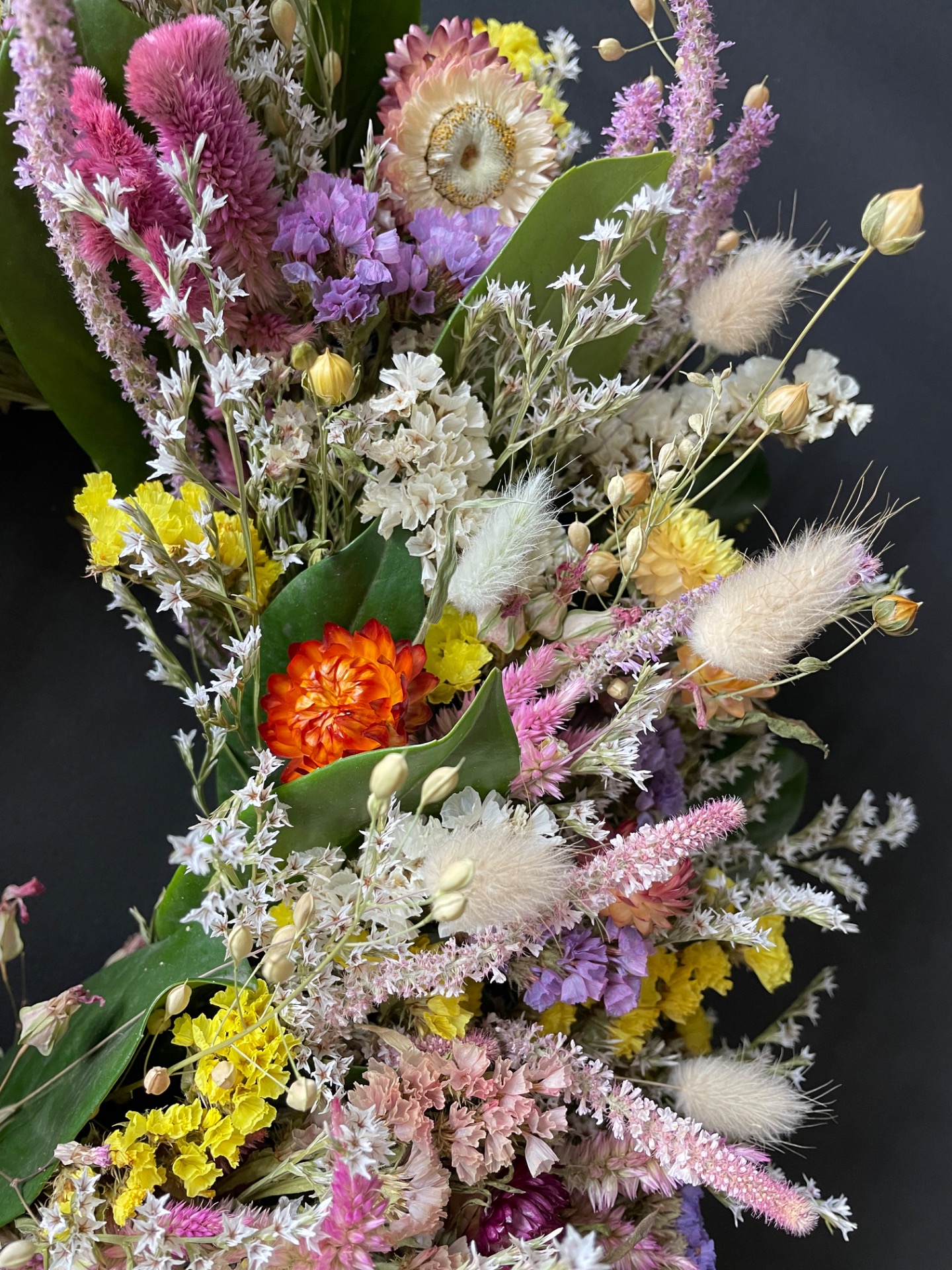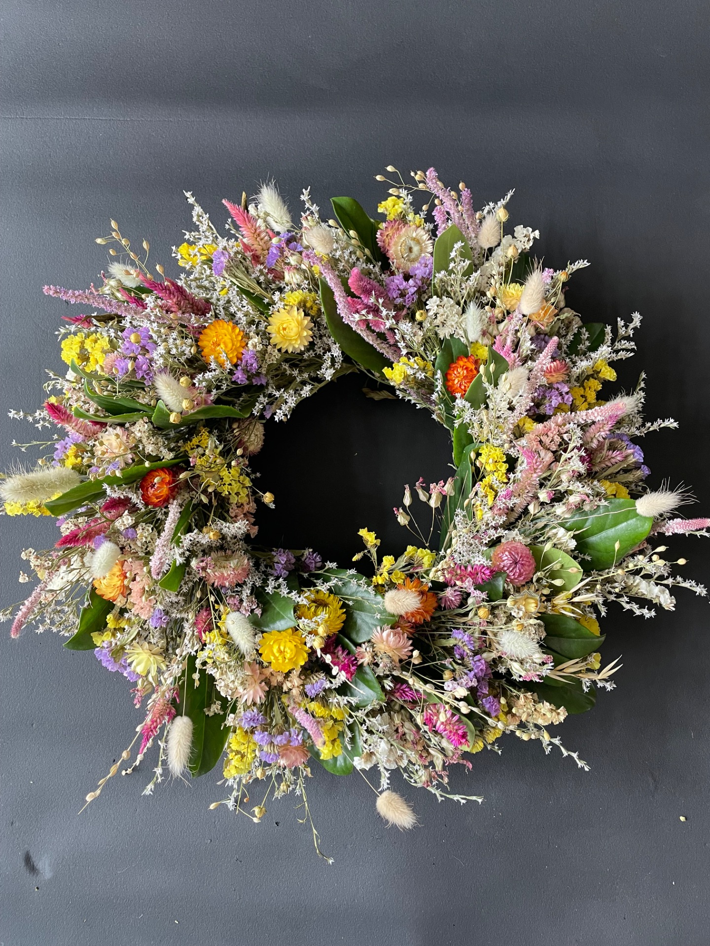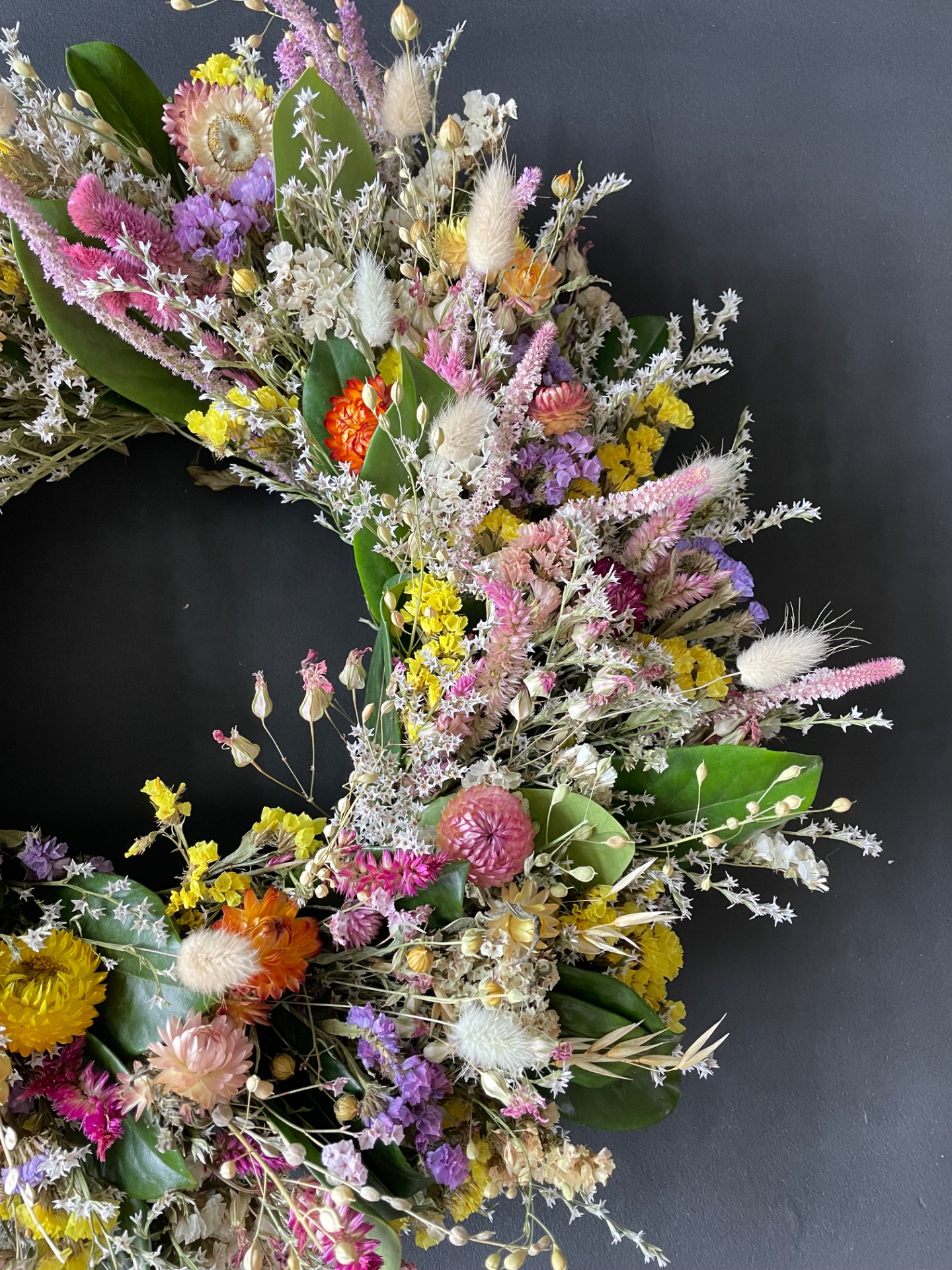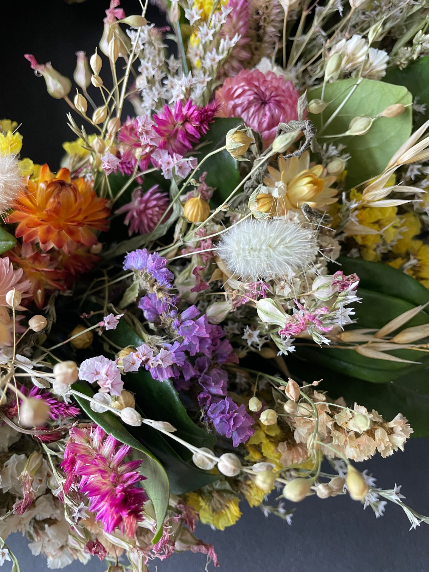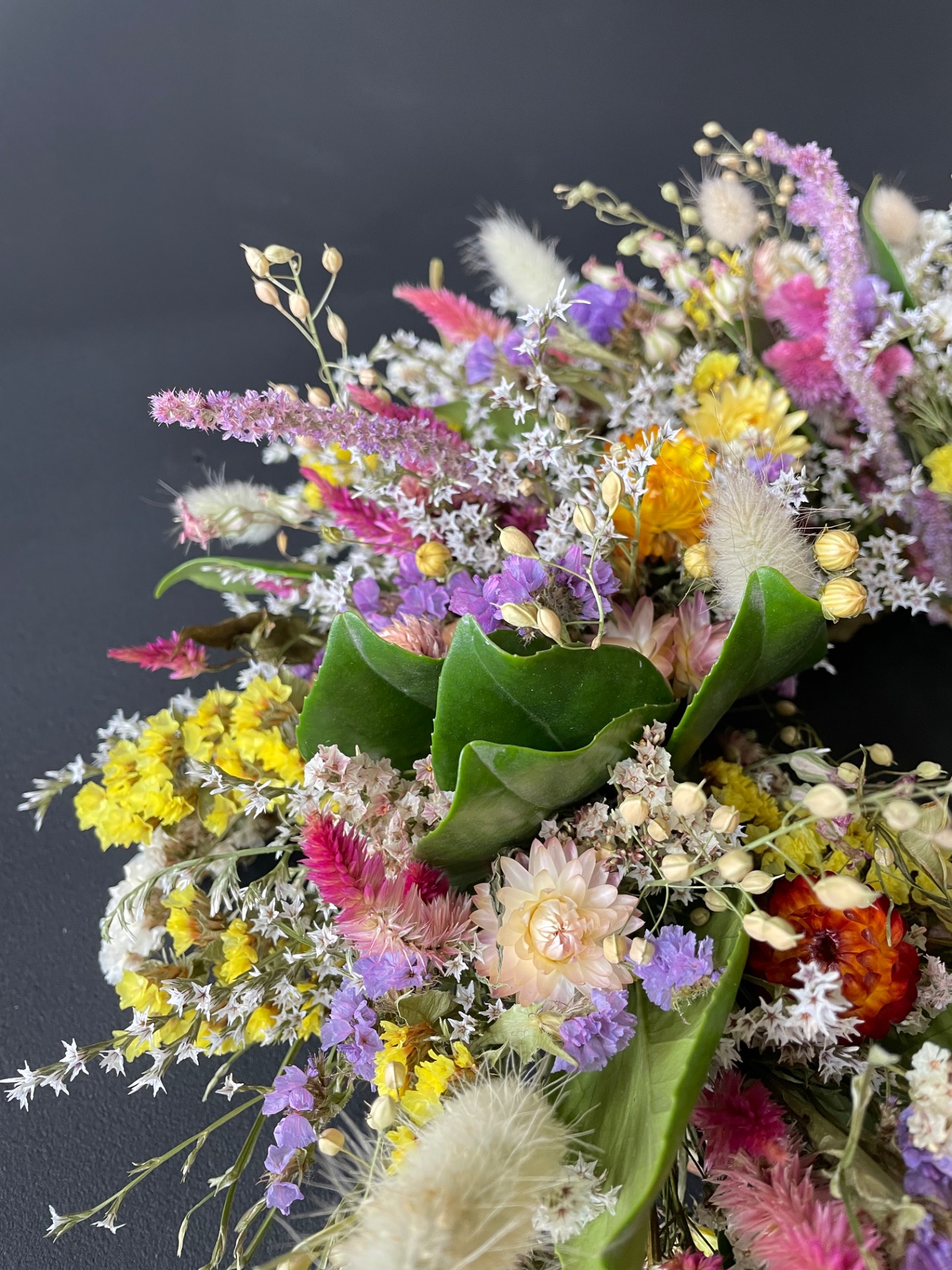 Prírodné rastliny: Použité rastliny vo venčeku sú vypestované na mojej kvetinovej farme. Každý kvet a vetvička je prirodzená, bez použitia umelých prvkov, farieb, či lepidiel. Nájdete v ňom tieto rastliny: limonku, slamienky, plameník, ľan, limonku tatársku, zajačí chvostik, zelené halúzky, limonka suworova, kravinec.