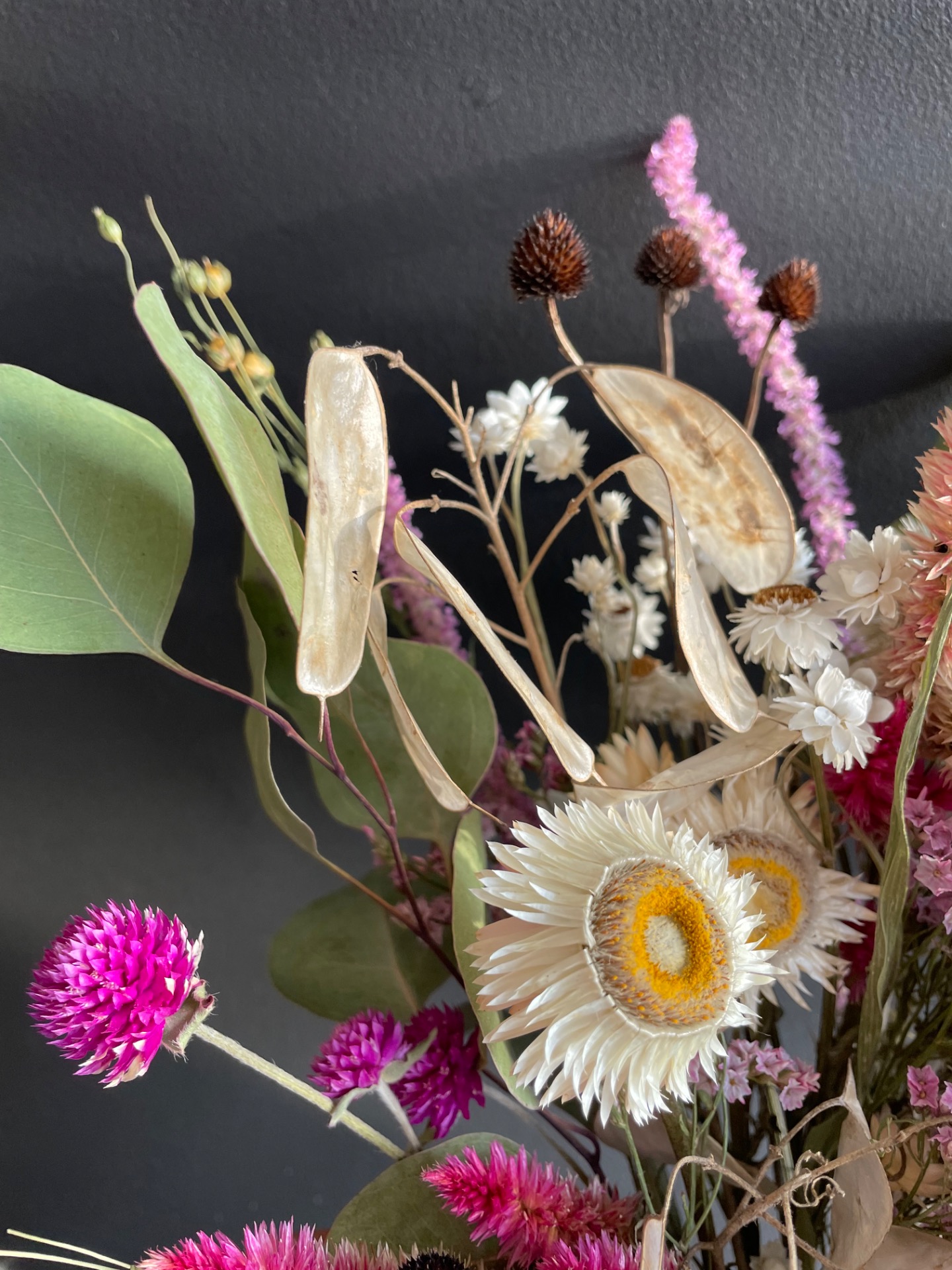 Všetky rastliny v kytici sú vypestované na mojej kvetinovej farme, alebo nazbierané v okolitej prírode. Počas pestovania a ani v priebehu ich spracovania, som nepoužívala žiadne postreky ani farbivá. Rastliny sú tak 100% prírodné. Je prirodzené, že rastliny majú drobné tvarové, rozmerové aj farebné odchýlky a dokonca aj nepatrné nedostatky. Tak to zariadila príroda.