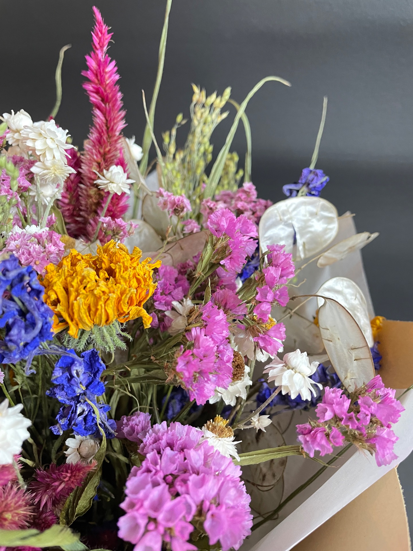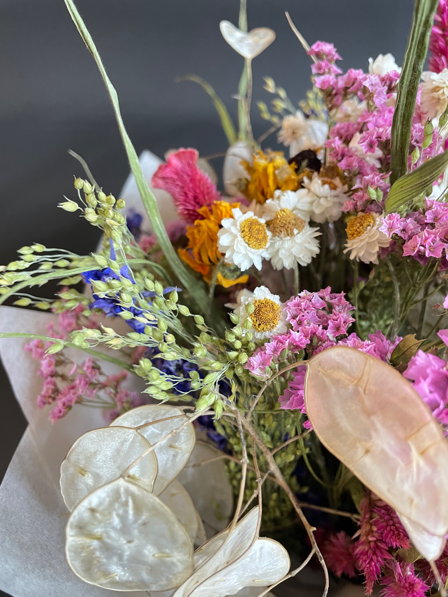 Všetky rastliny v kytici sú vypestované na mojej kvetinovej farme, alebo nazbierané v okolitej prírode. Počas pestovania a ani v priebehu ich spracovania, som nepoužívala žiadne postreky ani farbivá. Rastliny sú tak 100% prírodné. Je prirodzené, že rastliny majú drobné tvarové, rozmerové aj farebné odchýlky a dokonca aj nepatrné nedostatky. Tak to zariadila príroda.