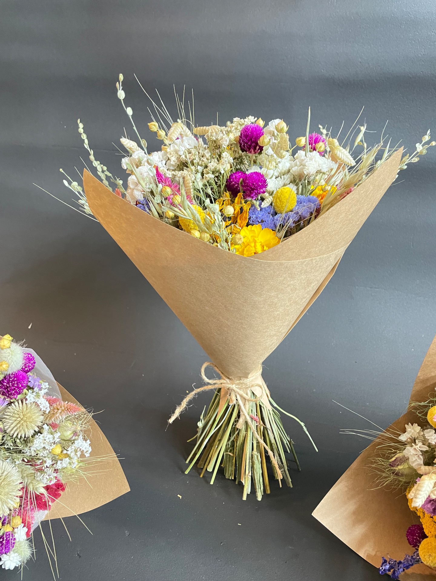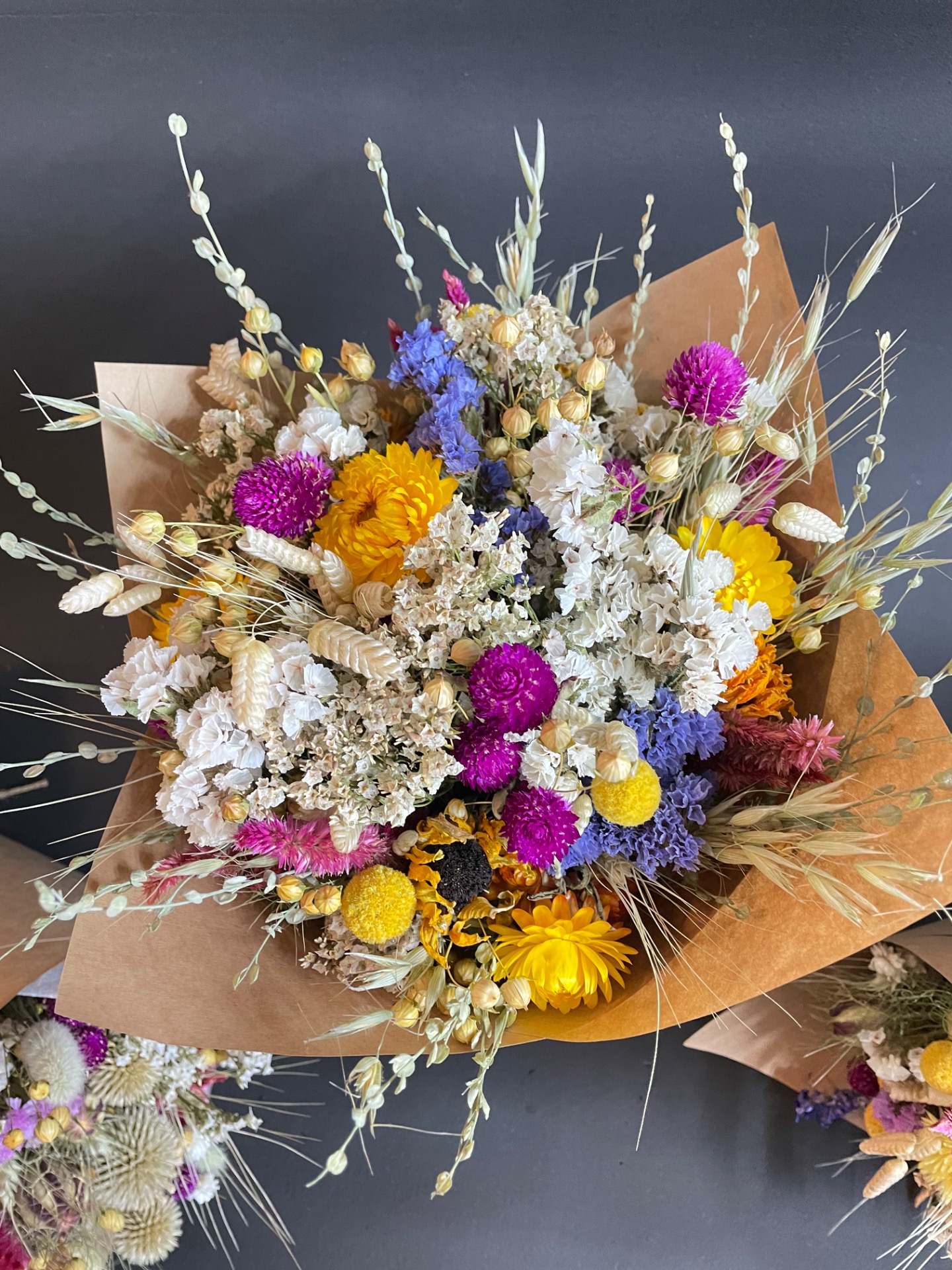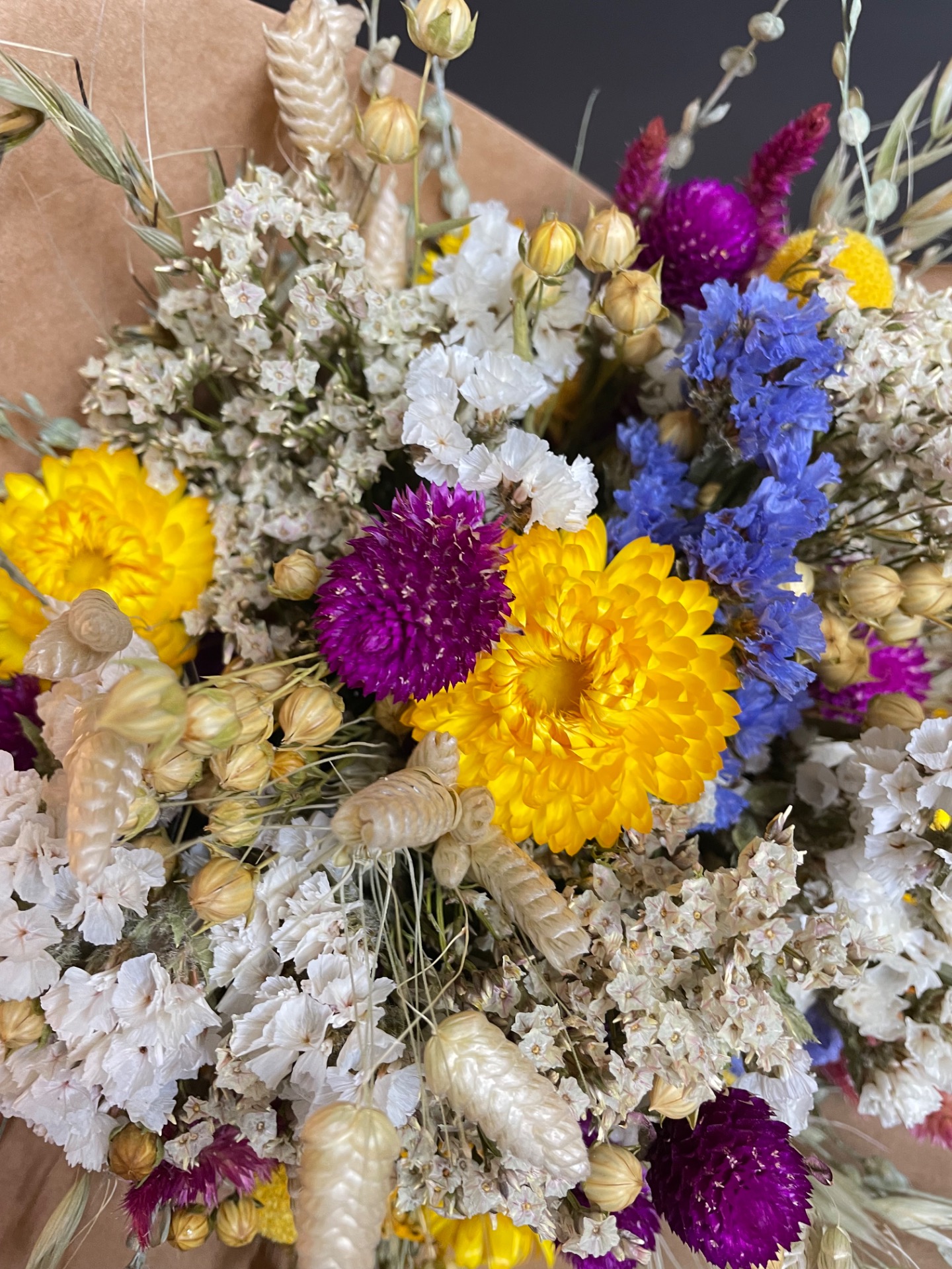 Všetky rastliny v kytici sú vypestované na mojej kvetinovej farme, alebo nazbierané v okolitej prírode. Počas pestovania a ani v priebehu ich spracovania, som nepoužívala žiadne postreky ani farbivá. Rastliny sú tak 100% prírodné. Je prirodzené, že rastliny majú drobné tvarové, rozmerové aj farebné odchýlky a dokonca aj nepatrné nedostatky. Tak to zariadila príroda.