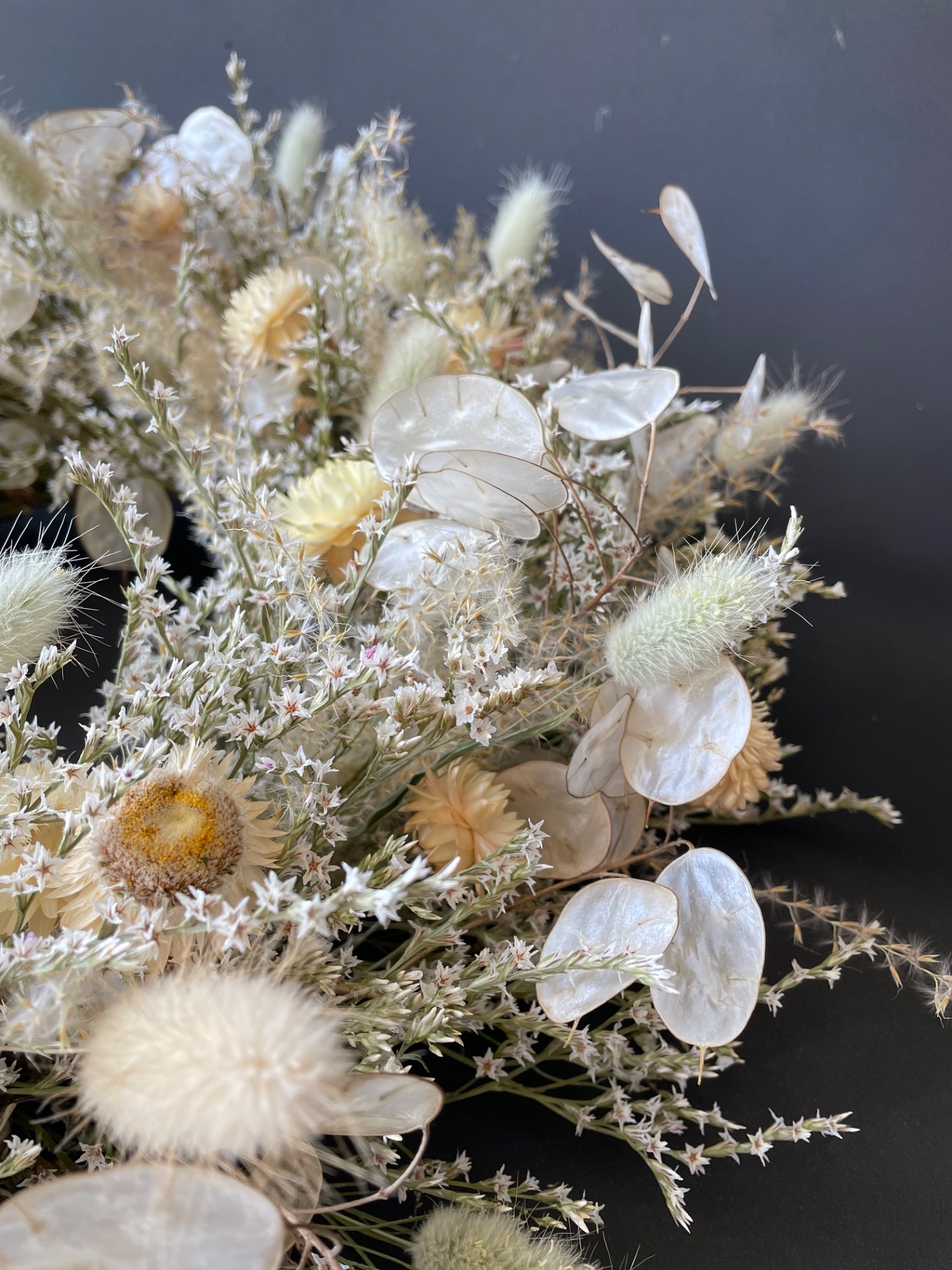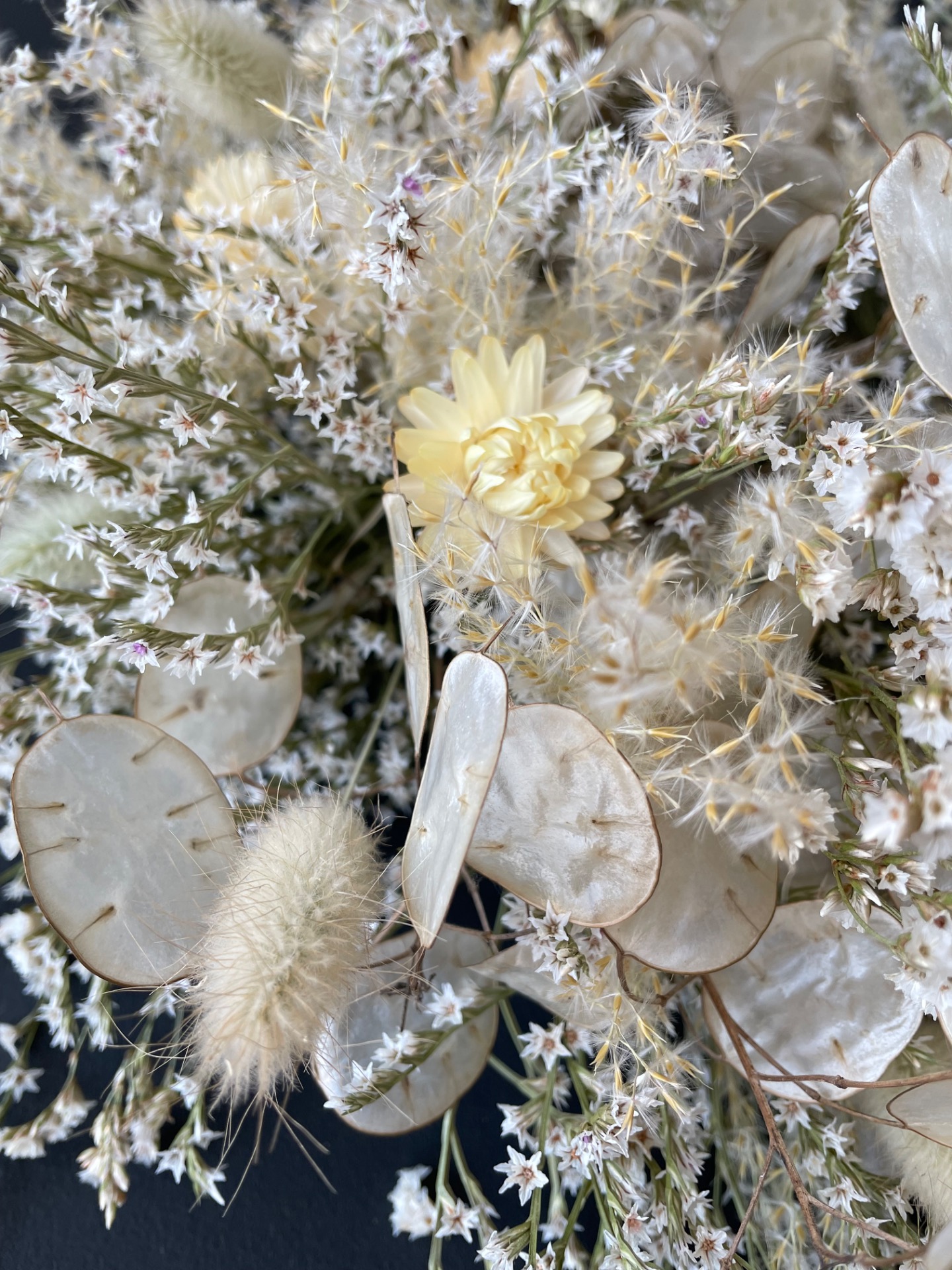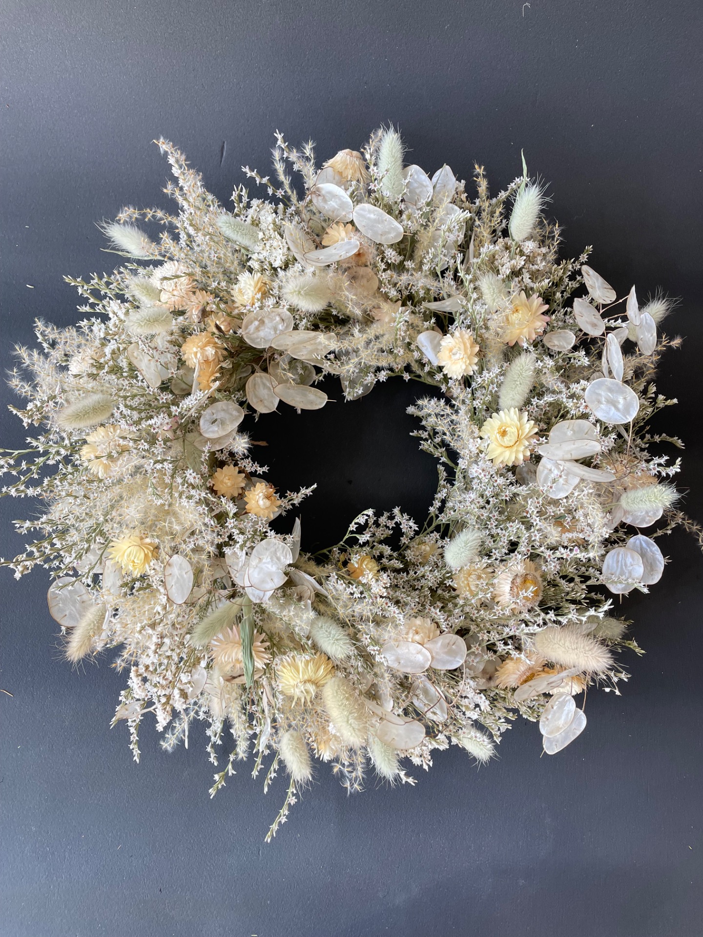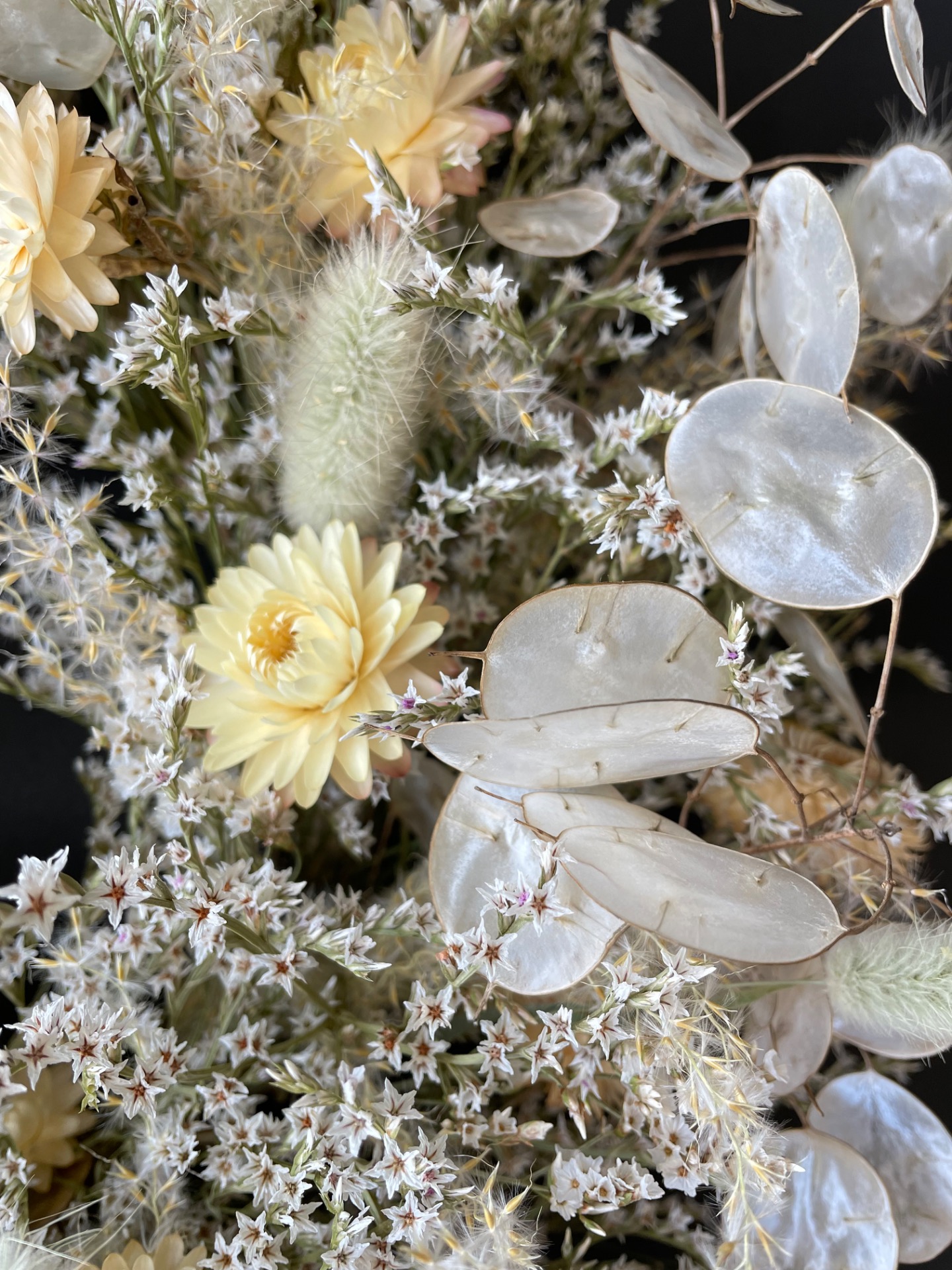 Prírodné rastliny: Použité rastliny vo venčeku sú vypestované na mojej kvetinovej farme a nazbierané v okolitej prírode. Každý kvet a vetvička je prirodzená, bez použitia umelých prvkov, farieb, či lepidiel. Nájdete v ňom tieto rastliny: slamienky, limonku tatársku, okrasné trávy, mesčnicu ročnú a limonku japonskú.